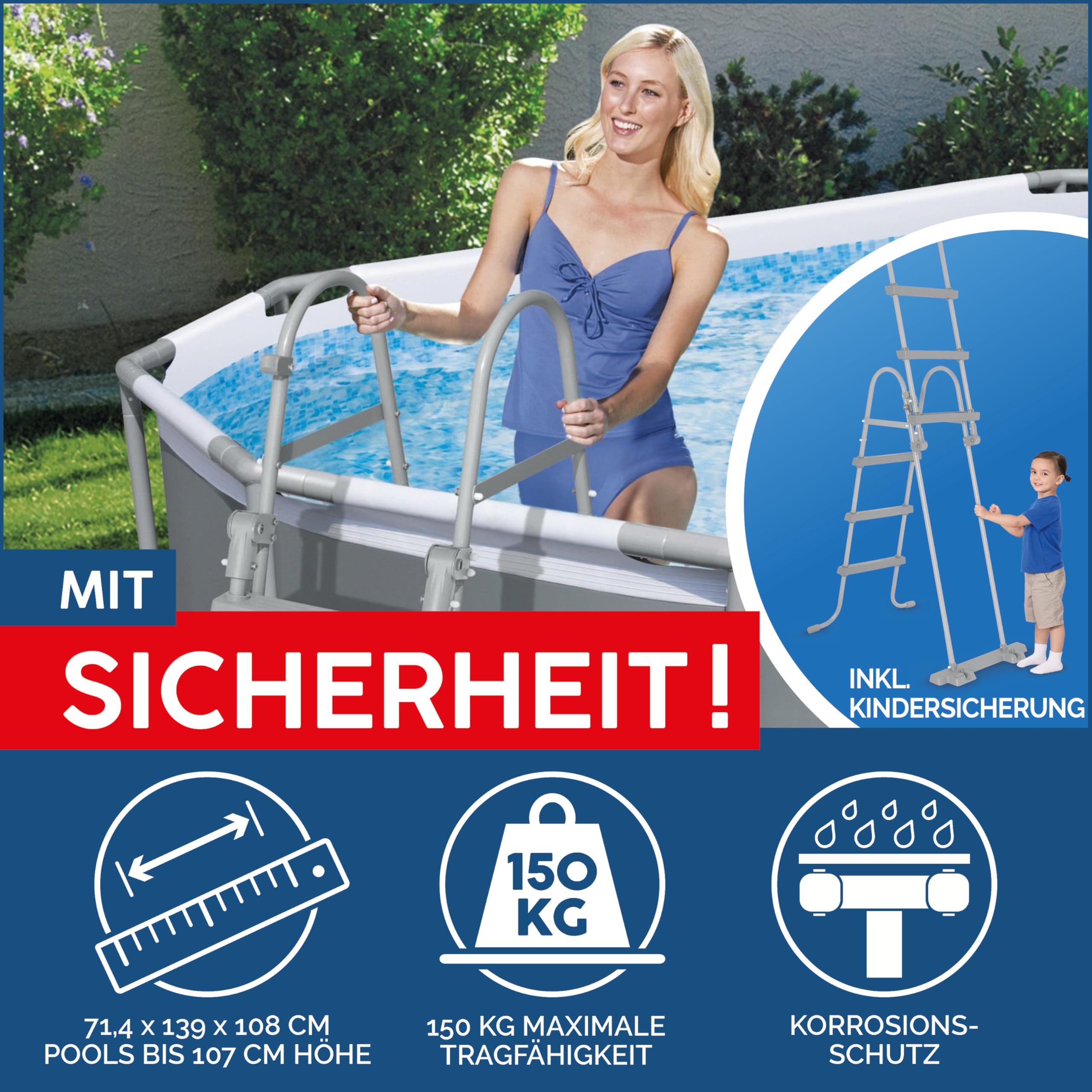 Um Kinder vor dem Ertrinken zu schützen, wird empfohlen, den Zugang zum Pool mit einer Schutzvorrichtung zu sichern