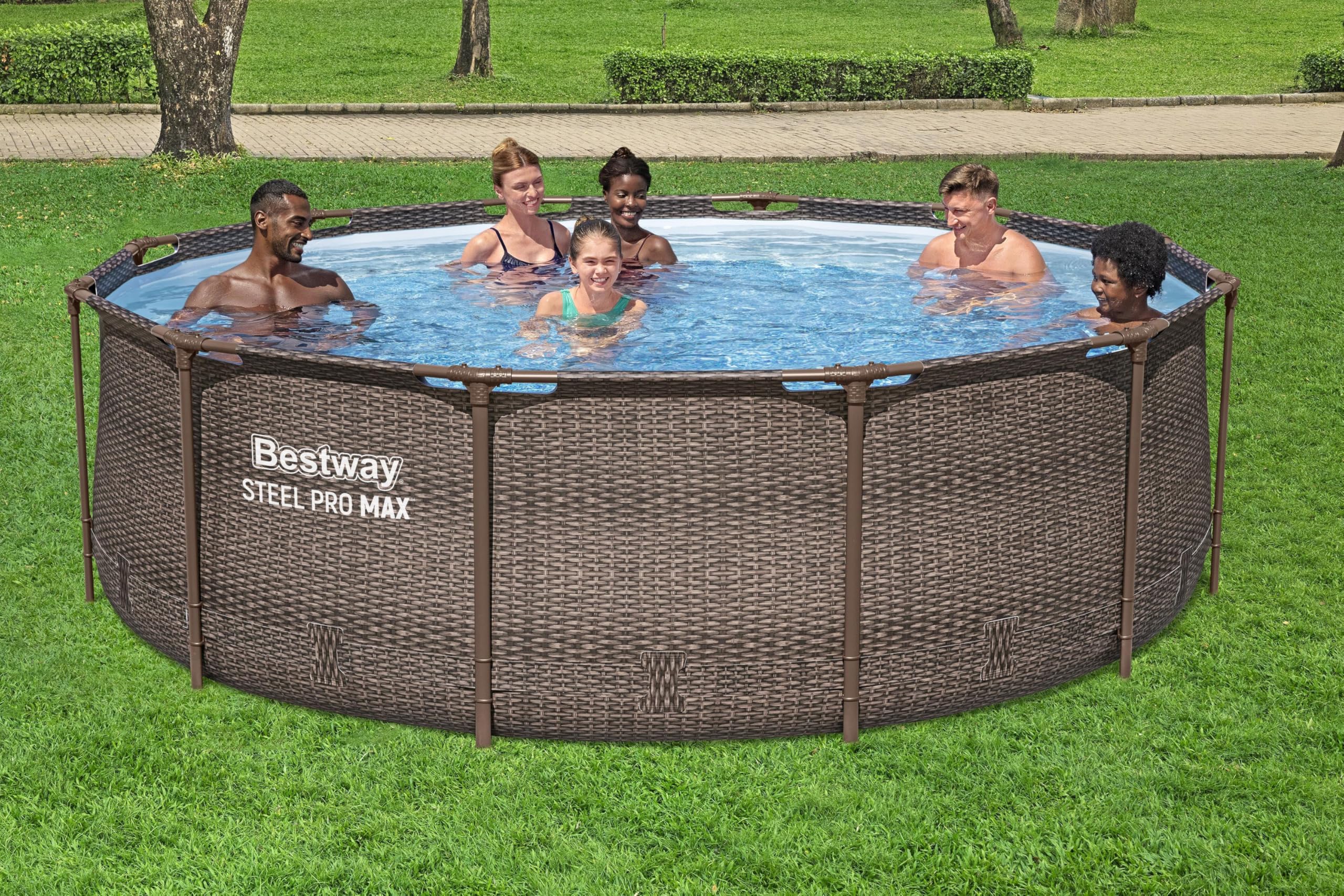 Bestway Steel Pro MAX Frame Pool-Set mit Filterpumpe Ø 366 x 100 cm, Rattan-Optik (Schokobraun), rund